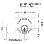 EVVA EPS vereinbart zuverlässige Technologie, robustes Design und hohe Nachschlüsselsicherheit. Der Hebelzylinder ZB27 ist für Holz- und Blechkästen, Briefkästen und -fachanlagen mit großer Zylinderstanzung und Elektroverteiler- bzw. Sicherungskästen geeignet. Die Fixierung erfolgt rückseitig durch eine Klemmplatte - Zylinderlochung Ø 28 mm (Zylinderstirnseite Ø 34 mm).