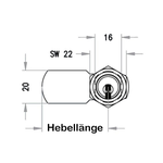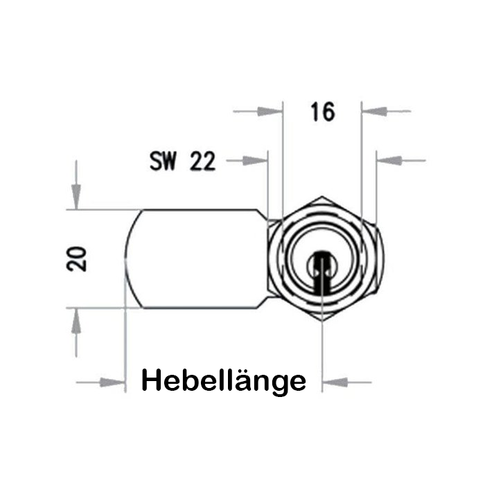 Zylinderstirnseite 22 mm Durchmesser | mit Gewinde M19 für Befestigungsmutter SW22 | Verriegelung durch Schließhebel (auswählbar) | Sperrweg 90 Grad, Schlüssel nur im geschlossenen Zustand abziehbar | verdrehgesichert durch abgeflachte Seiten | rückseitige Fixierung mit Sechskantmutter (SW22)